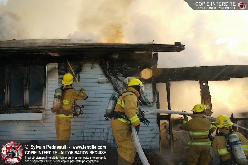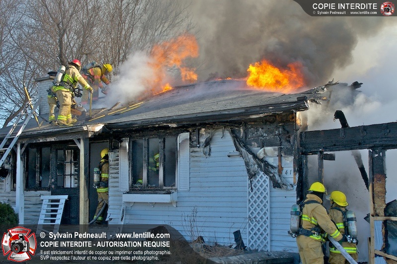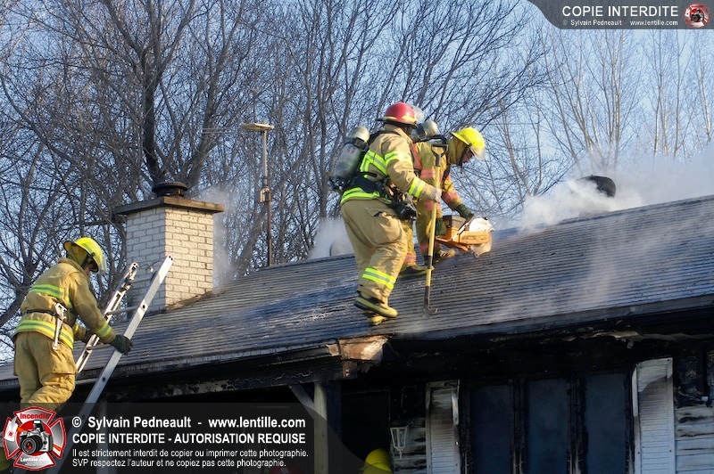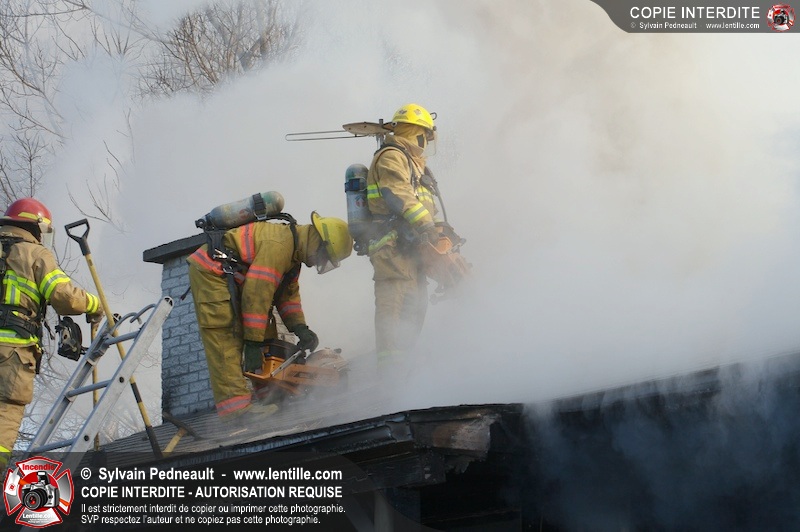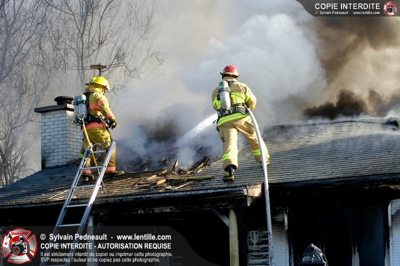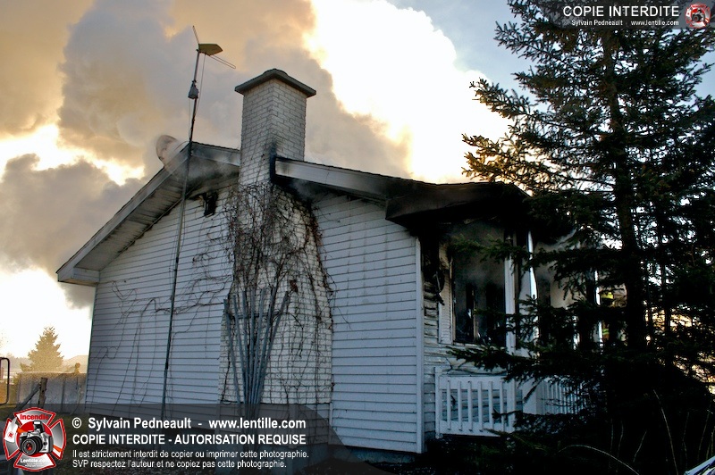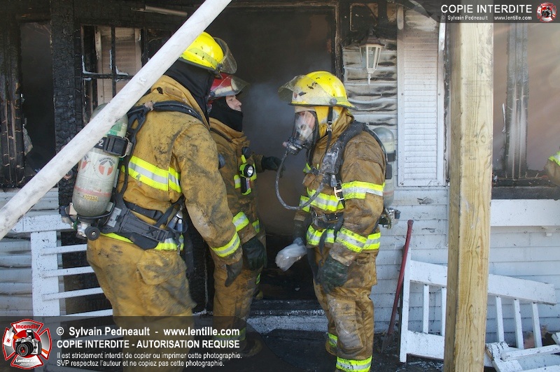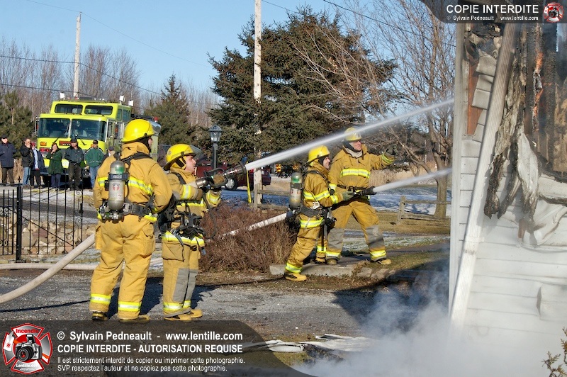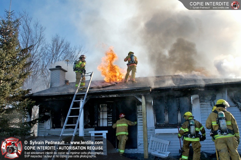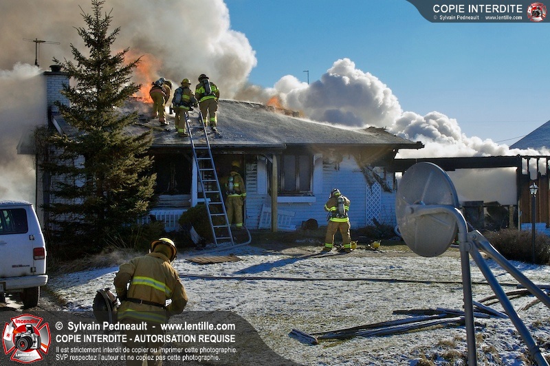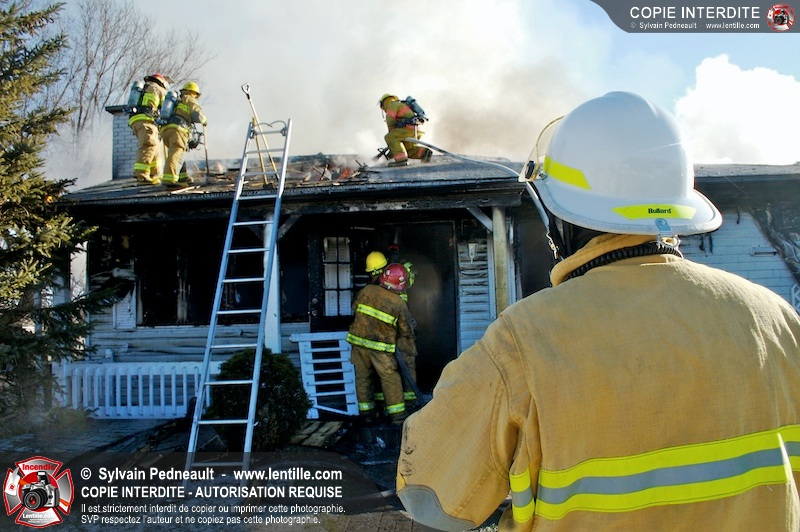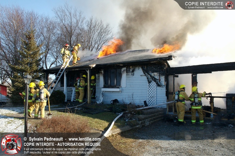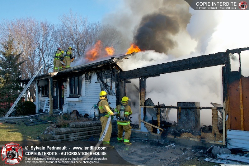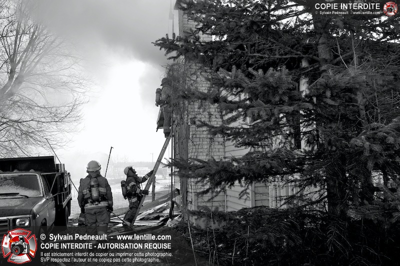 Une résidence du 5e rang est partie en fumée alors que ses propriétaires étaient absents. Les pompiers ont sonné une deuxième alarme pour disposer des secours nécessaires aux opérations. À un certain moment, un retrait stratégique a été ordonné par le chef aux opérations, mais une unité a été redéployée au secteur 1 peu après.