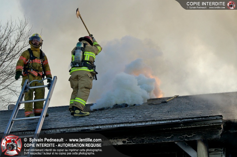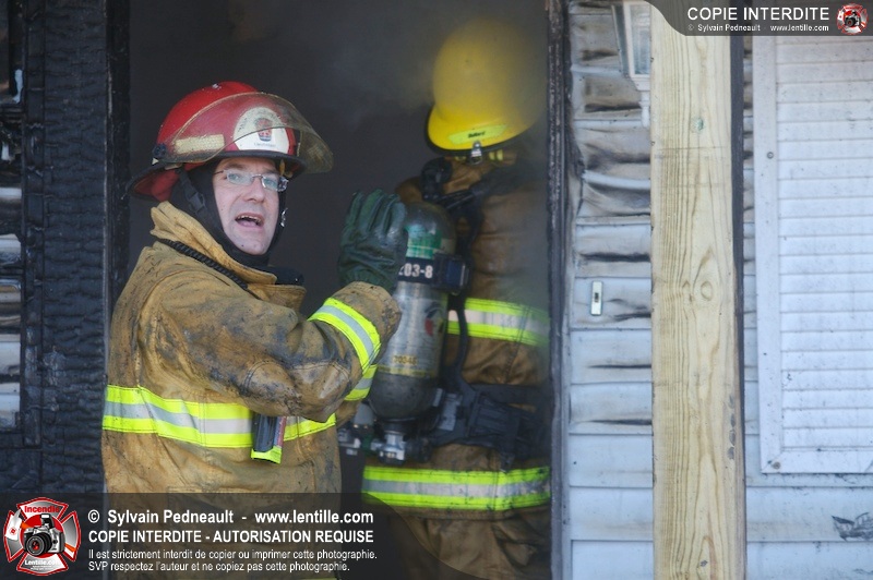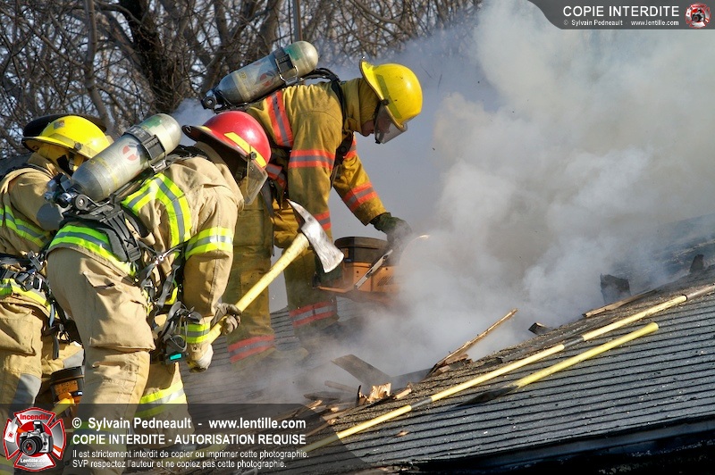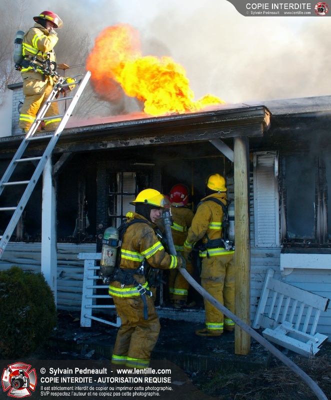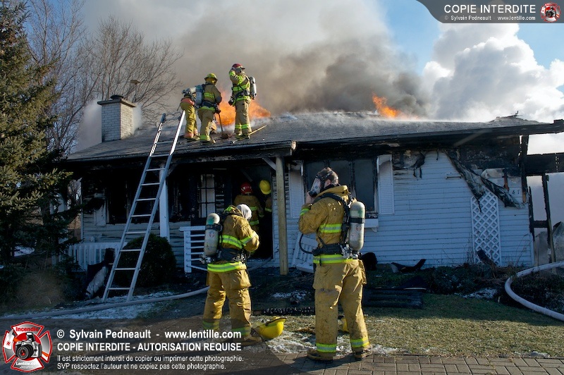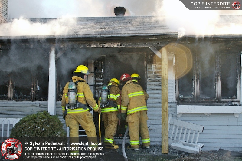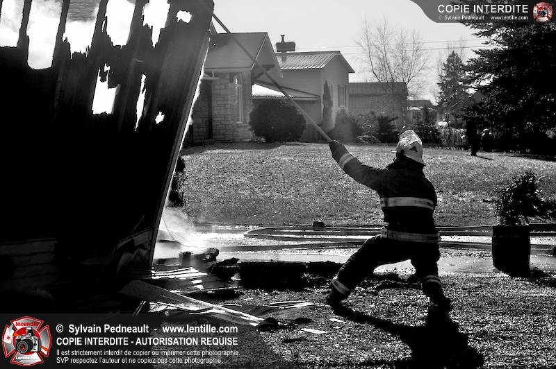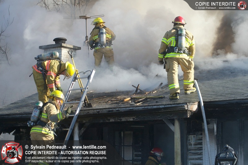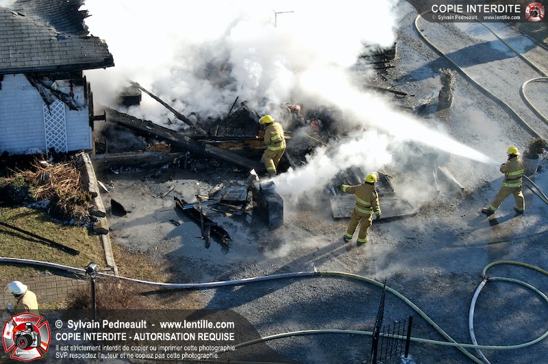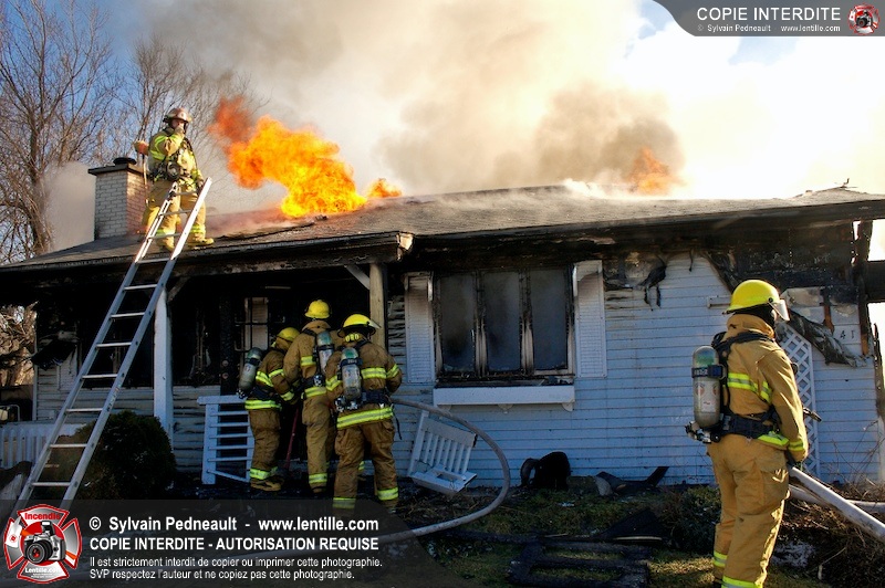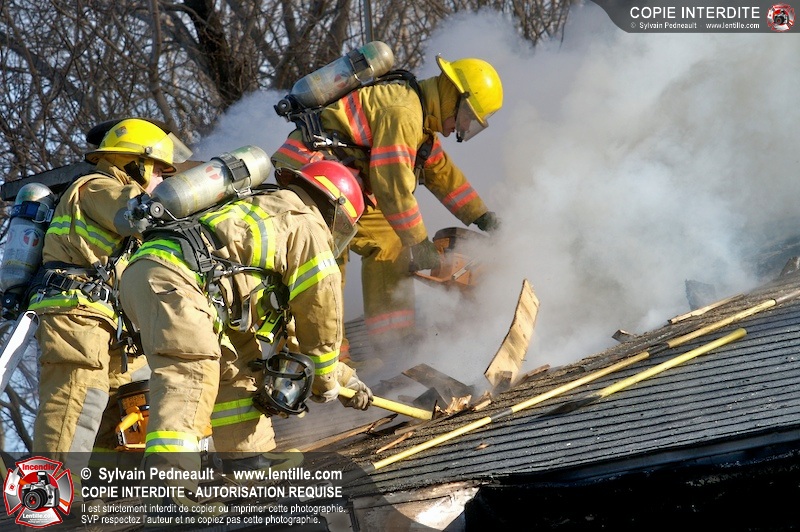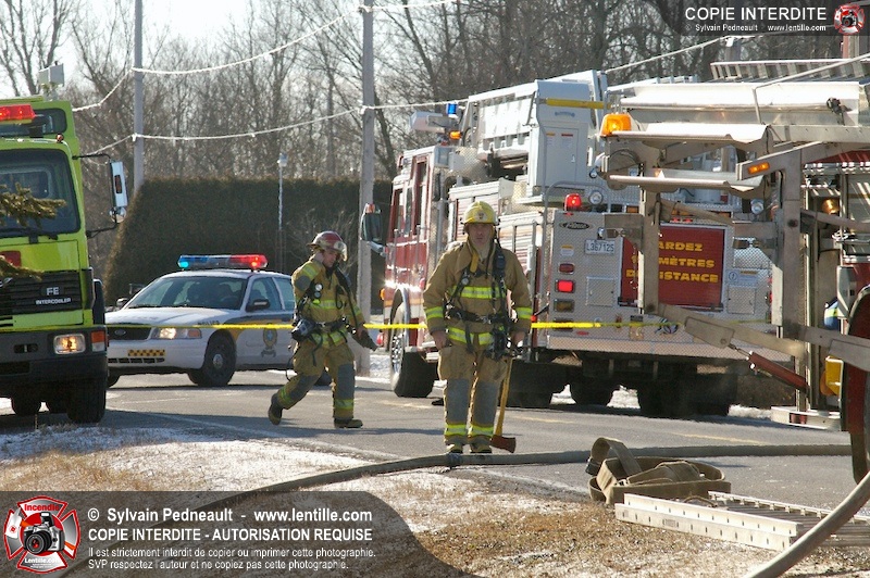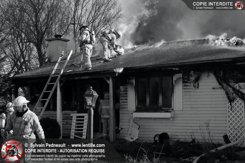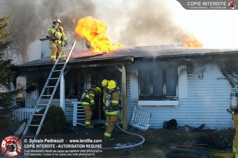 Une résidence du 5e rang est partie en fumée alors que ses propriétaires étaient absents. Les pompiers ont sonné une deuxième alarme pour disposer des secours nécessaires aux opérations. À un certain moment, un retrait stratégique a été ordonné par le chef aux opérations, mais une unité a été redéployée au secteur 1 peu après.