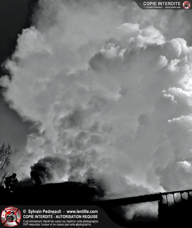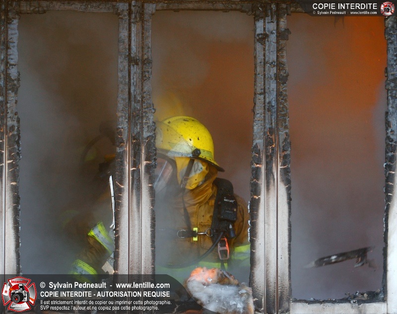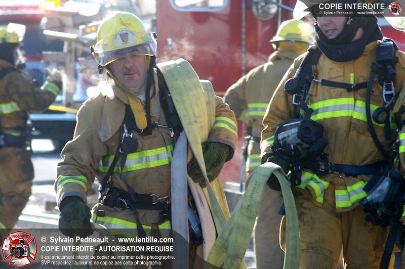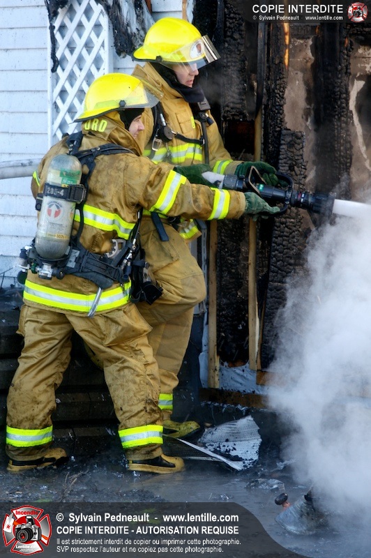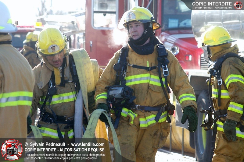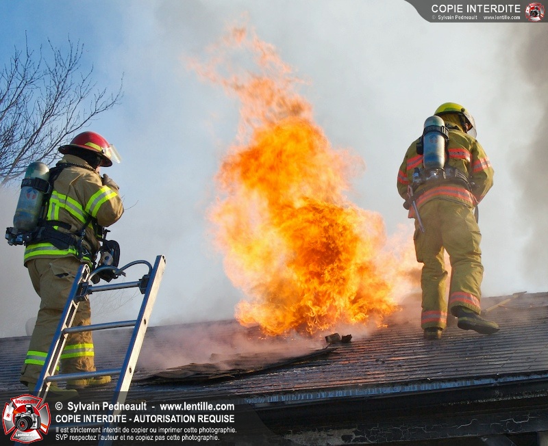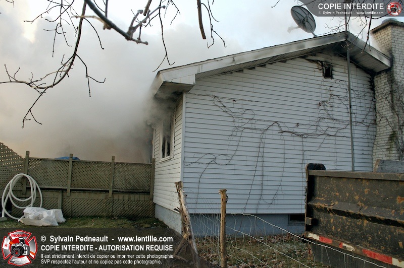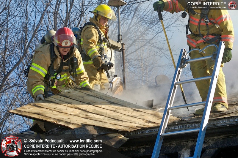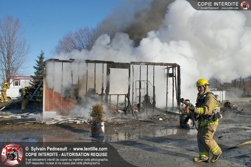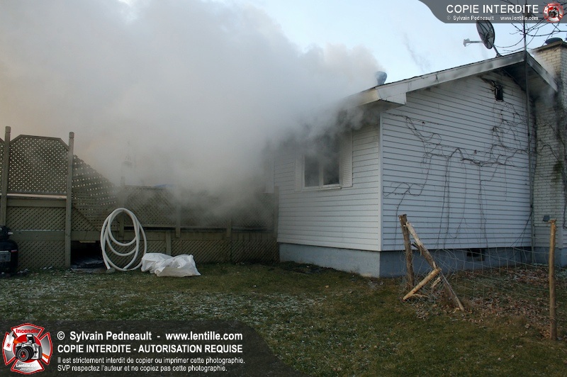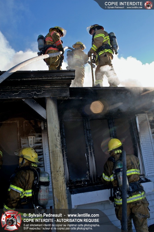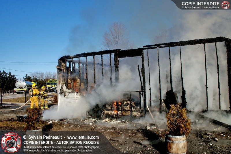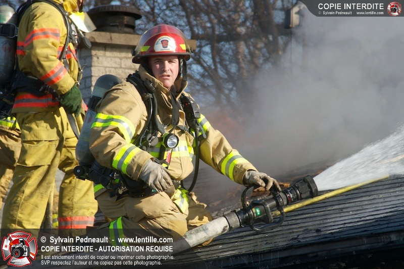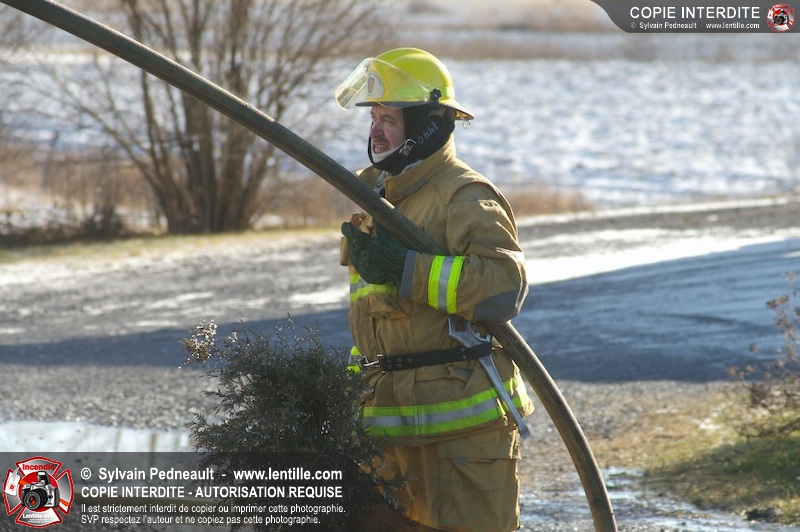 Une résidence du 5e rang est partie en fumée alors que ses propriétaires étaient absents. Les pompiers ont sonné une deuxième alarme pour disposer des secours nécessaires aux opérations. À un certain moment, un retrait stratégique a été ordonné par le chef aux opérations, mais une unité a été redéployée au secteur 1 peu après.