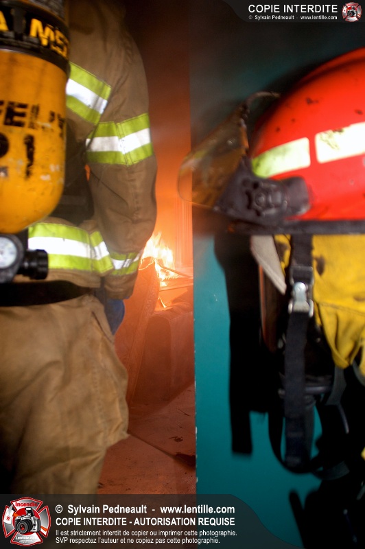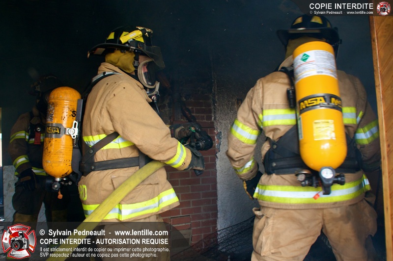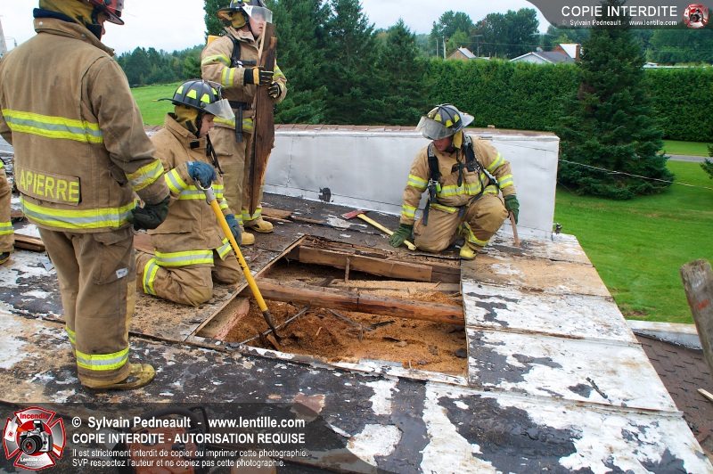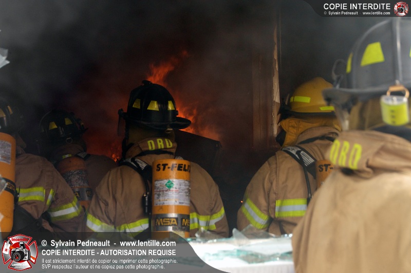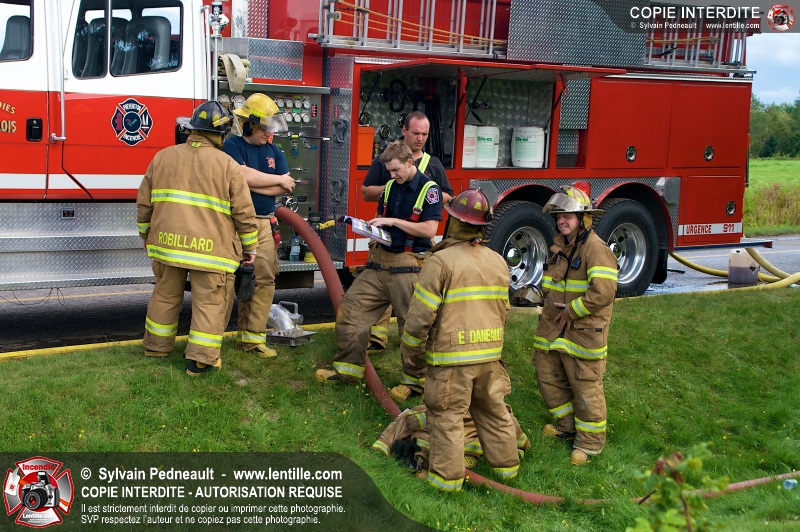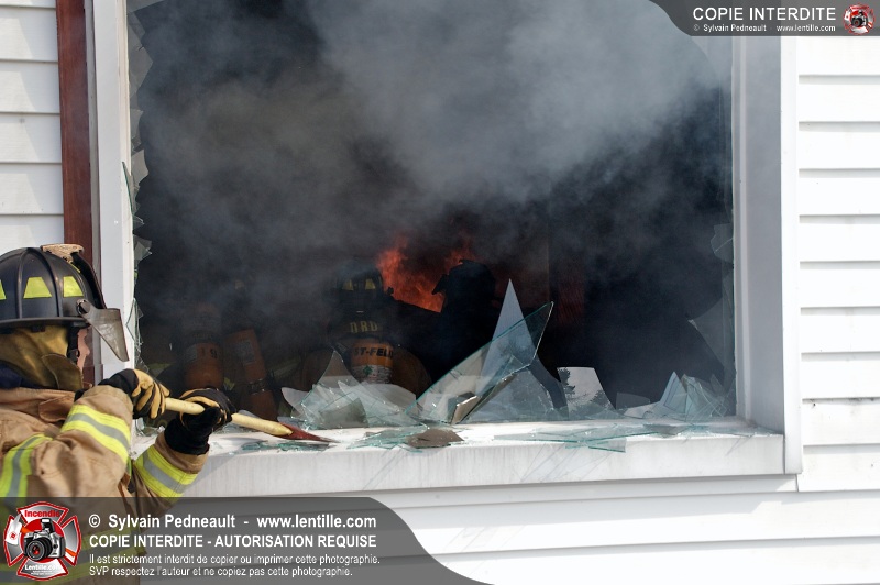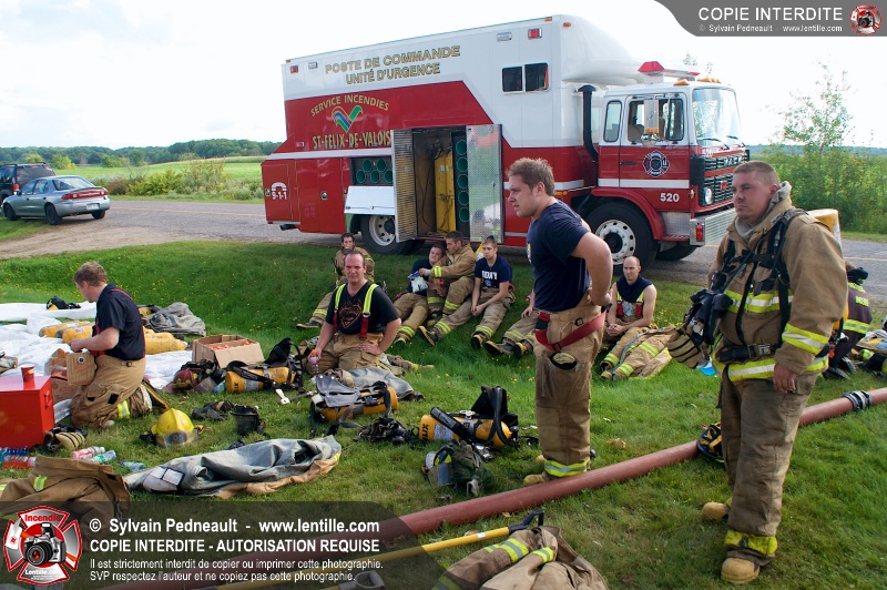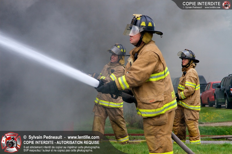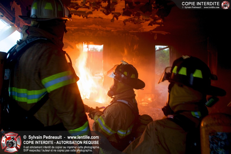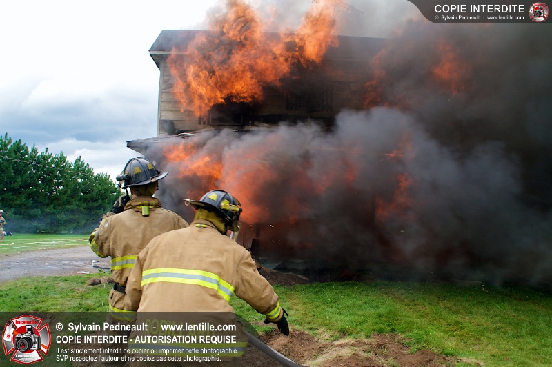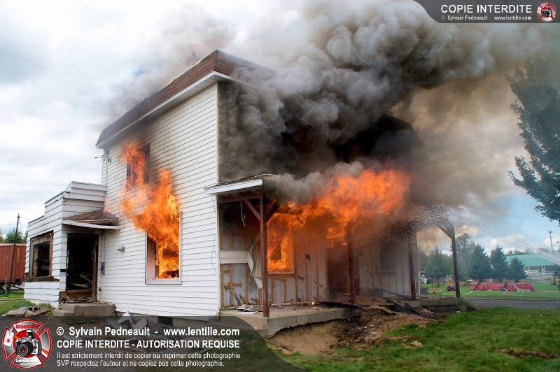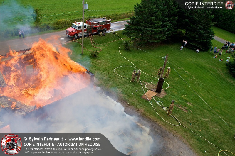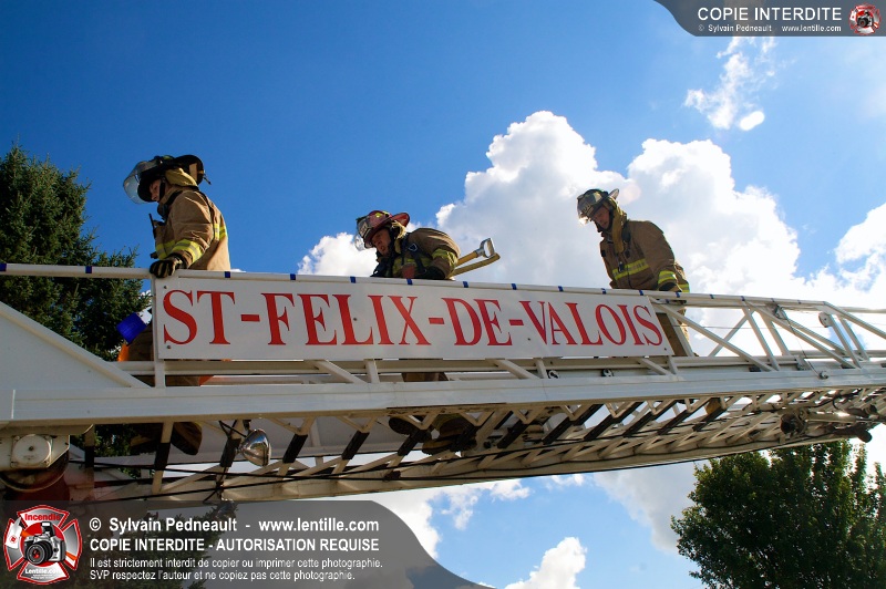 Le Service incendie de St-Félix-de-Valois a organisé une pratique d'incendie dans une maison prévue pour la démolition. Les pompiers ont participé à différents exercices d'intervention durant l'avant-midi, puis ont procédé à la mise à feu finale en après-midi.